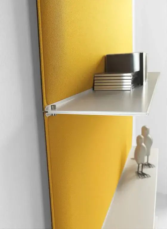 Met Blade krijgt u naast een verbeterde akoestiek een toevoeging in de vorm van een aflegblad. Dit blad is bedoeld om te gebruiken als "open vitrine" waarop accessoires en objecten kunnen worden geplaatst. De geluidsabsorberende aspecten van de Snowsound® wandpanlen verbeteren gegarandeerd het akoestische klimaat doordat zij de hinderlijke nagalmtijd aanzienlijk reduceren.