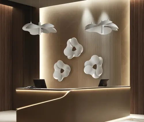 Clover akoestische panelen zijn zeer decoratief en worden toegepast in ruimtes waar hoge esthetische eisen worden gesteld aan akoestische oplossingen. Naast voor hotellobbies, showrooms en kantooromgevingen is Clover ook uitermate geschikt om in een thuisomgeving de akoestiek verbeteren. De uitzonderlijk hoge geluidsdempende werking is uitvoerig getest en bewezen in het laboratorium voor akoestiek verbonden aan de universiteit van Ferrara in Italië. Testresultaten zijn op aanvraag beschikbaar.