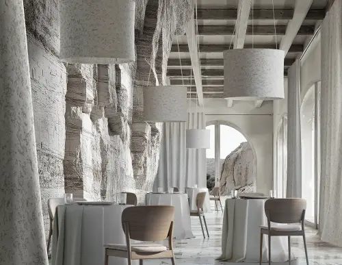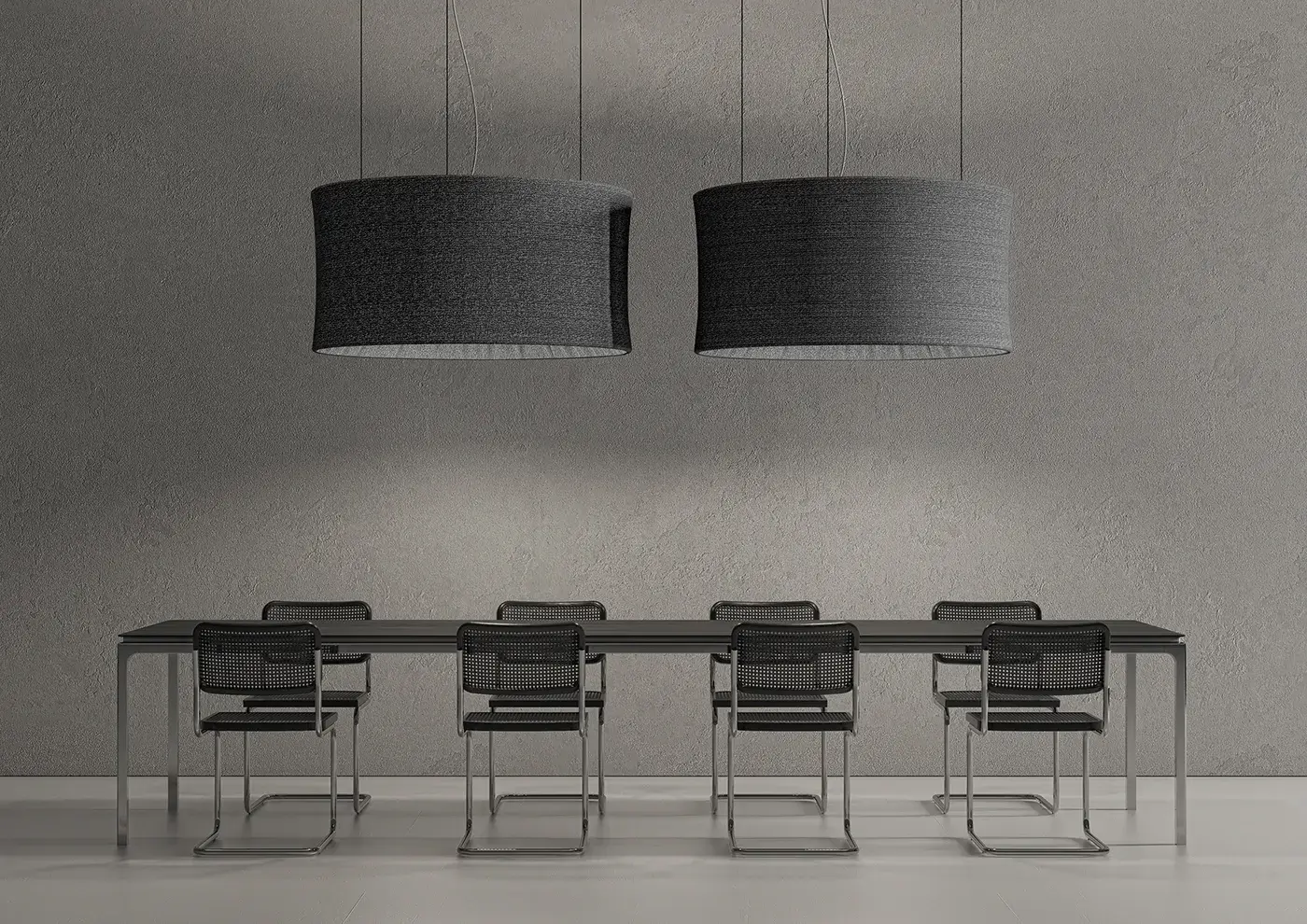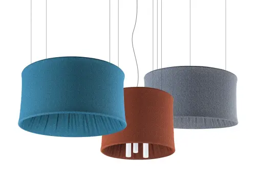 Deze imposante geluidsabsorberende lampenkap bied de mogelijkheid om twee problemen in een keer op te lossen. De akoestiek zal merkbaar verbeteren en voor het toepassen van verlichting zijn de mogelijkheden legio. Milano is gemaakt van Snowsound Fiber 8 Bouclé en Snowsound Fiber 14 Biosphere-stof, aangebracht over een buisvormige frame die de hoogwaardige akoestische stof aan de buitenkant licht getailleerd en aan de binnenkant geplooid houd. De met lucht gevulde ruimte tussen de externe en interne stof zorgt voor betere akoestische prestaties van de lampenkap. Milano is verkrijgbaar in twee maten; diameter 80cm en 120cm. De lampenkap wordt met drie in hoogte verstelbare kabels aan het plafond opgehangen.