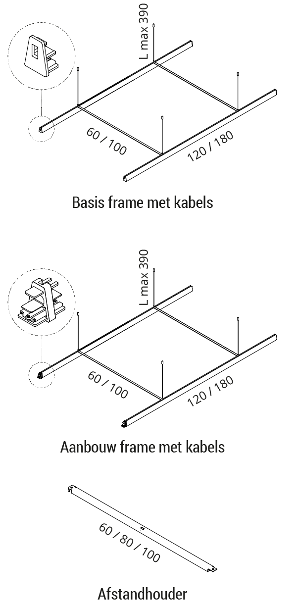 Deze baffles zijn vervaardigd van Snowsound-Fiber 2 Line of Fiber 3 Mélange. De stof is eenvoudig te verwijderen van de steunen en kan worden gewassen.