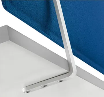De Mitesco panelen kunnen op verschillende manieren op of aan een bureaublad worden gemonteerd. Daarnaast is er nog de mogelijkheid om de panelen vrijstaand neer te zetten dankzij steunen met een brede voetplaat.
