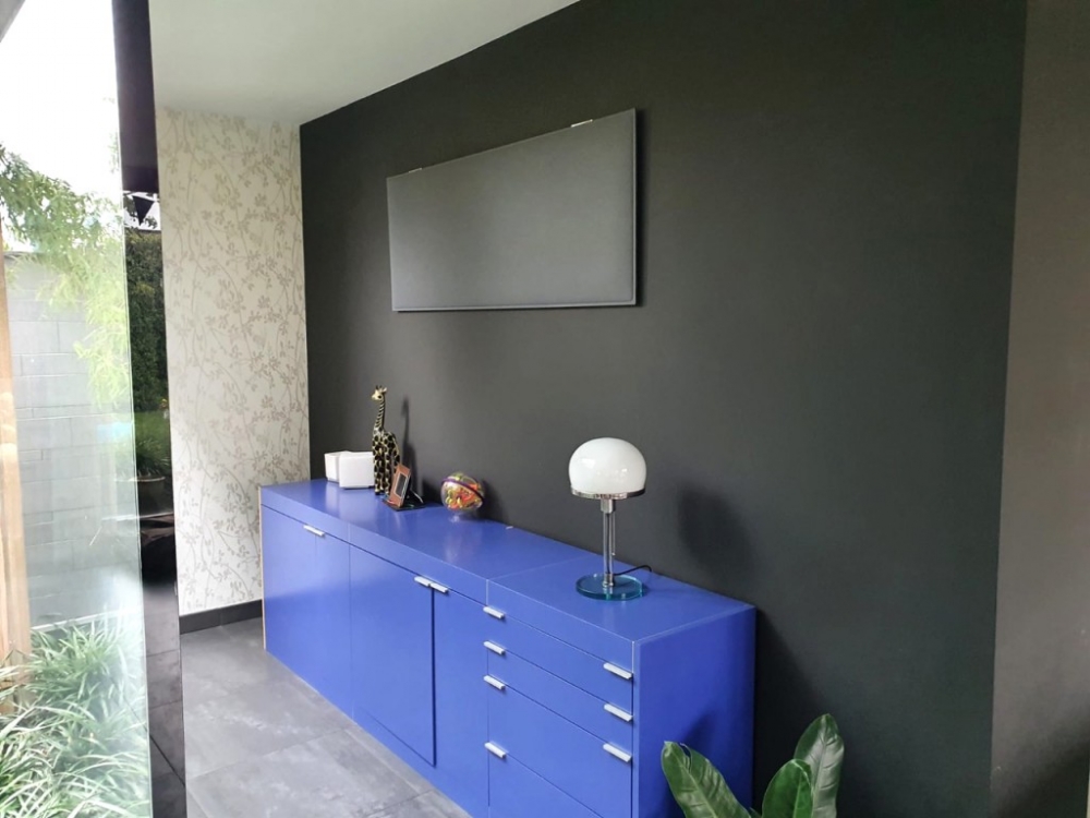 In de woonkamer en open keuken van dit moderne woonhuis is de akoestiek op orde gebracht door het toepassen van diverse producten uit de Snowsoud collectie. Zo is er een decoratieve Botanica Totem in een hoek neergezet waar veel geluidsreflecties plaats vonden. Boven het kookeiland is een Oversize Lux plafondeiland opgehangen met geïntegreerde LED verlichting en boven de eettafel een Giotto plafondpaneel waar de bestaande verlichting doorheen is gehangen. Ten slotte zijn er nog enkele Snowfix wandpanelen toegepast.