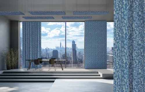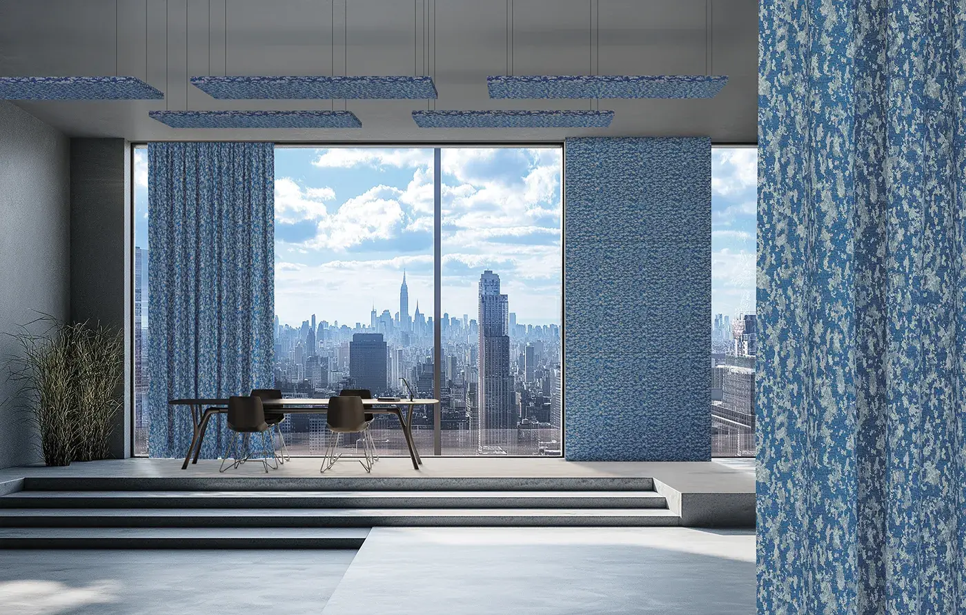 Dankzij de vrijheid die Snowsound Fiber u bied met een akoestische stof die u naar eigen wens kunt verwerken verbeterd u de akoestiek in combinatie met uw eigen creativiteit. De Snowsound Fiber technologie is gebaseerd op een weefsel van zachte vuurbestendige akoestische polyester vezels. Dankzij de interactie tussen de vezels en de lucht eromheen beschikken de stoffen over hoogstaande akoestische kwaliteiten. Door daarnaast zorgvuldig om te gaan met de hoeveelheid materiaal en de positie ervan in de ruimte kunnen wij met Snowsound Fiber de akoestsiche situatie aanzienlijk verbeteren. Al onze akoestische stoffen hebben het Greenguard certificaat verkregen omdat de productie ervan voldoet aan de strenge eisen voor chemische uitstoot.