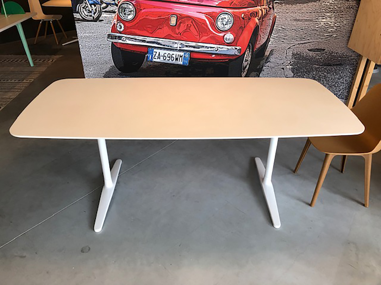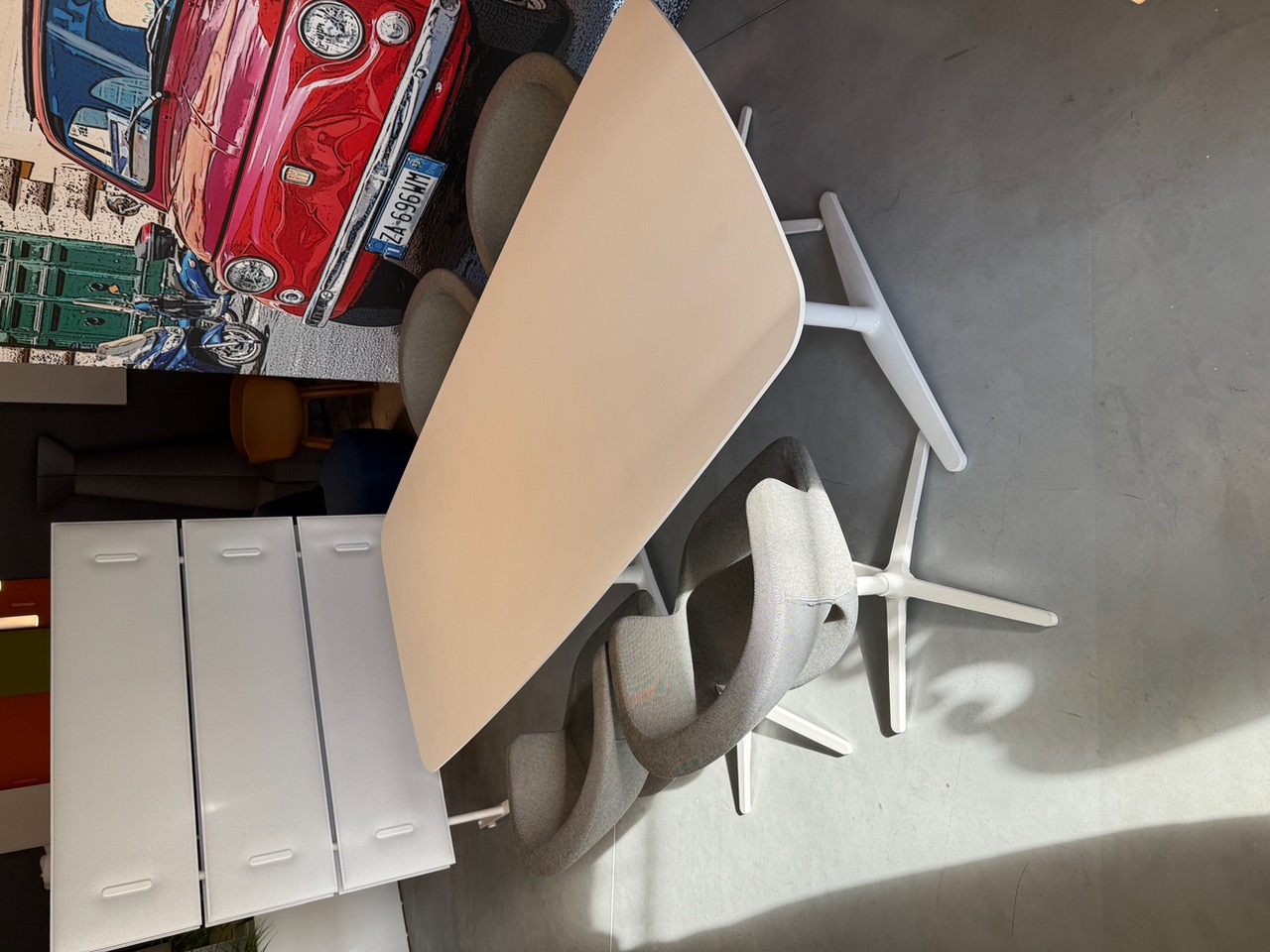 De werkplek is naadloos geïntegreerd in het geheel en biedt een royale en comfortabele werkruimte, met daaronder praktische opberglades. Het ontwerp sluit naadloos aan bij de tijdloze en elegante vormentaal die Simple kenmerkt.